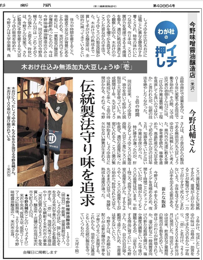 先日、山形新聞に掲載していただきました❗️